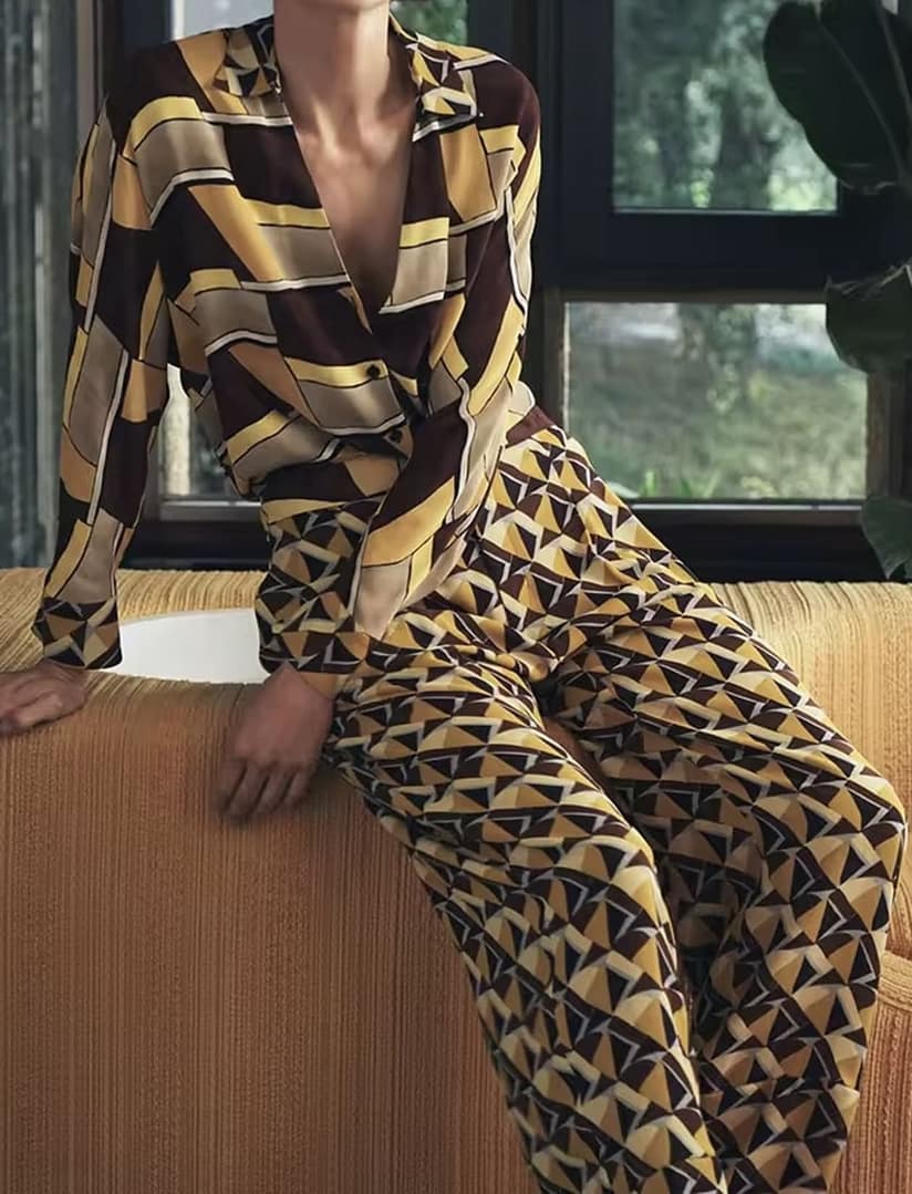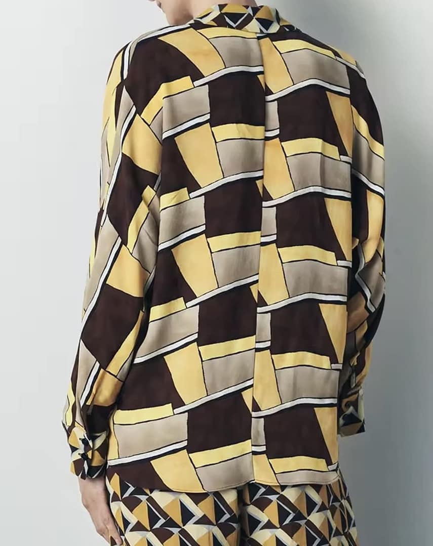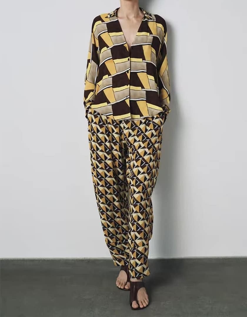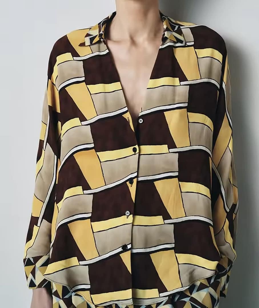 Se puede complementar con blusa geometrica como conjunto.